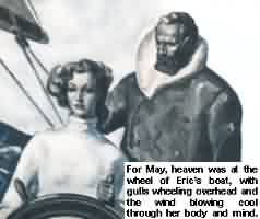 Mon 1/15/2007 11:26 am. Page 58 Cosmopolitan 6/37. ... A truly spooky story about the poor little Idaho reglar girl who meets a guy on the train, and things are obviously sparking but then her appendicitis kicks-in, and she never gets to romantic New Jersey for the high school Christian conference — and, presumably, canoodling with the rich guy who has a boat — but instead lives her life out in Dullsville Idaho marrying, of all people, the local baritone. ... He is beloved by all the girls who chase him day and night, but he goes for her, but turns out to be a complete waster. ... Well, not complete. ... At the last day, she learns (1.) she is pregnant and therefore does not want to live, because pretty-much (2.) she hates Sylvester the baritone, and (3.) Sylvester and his dreary musician buddy have, against all likelihood and long-standing tradition, landed a big contract with the radio station doing his new mixed quartet gimmick, which involves them playing and singing numerous different parts simulating a quartet, presumably to huge hilarious effect. ... Our heroine reports that Sylvester could switch from baritone to a high falsetto with great facility, and anyone would think it was a soprano. ... I felt this part was overkill on the authors part, but it certainly presents a chilling picture. ... Anyway, she decides to do herself in, but then realizes she cant do it here in Dullsville because there would be an autopsy and poor Sylvester would find-out she was pregnant and that she had killed herself because she was pregnant, and she cant bear to do that even to the idiot Sylvester. ... Earlier it was related how she attended a meeting with a progressive preacher who pretty-much pooh-poohed this life-after-death guff and claimed, in the standard liberal doxology, that our eternal life will be worked-out in our descendants; being fully convinced by the atheist sermon, she remarks to a girlfriend thank goodness; when its over its over — because, thank the nullity that surrounds us, she has no child — until the fateful day....
